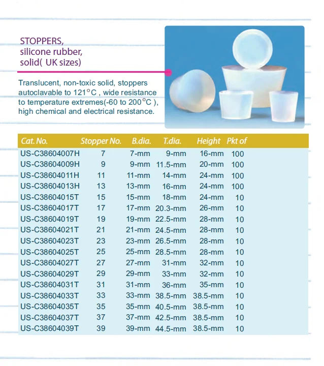 Divide by 25.4 to convert to inches stopper size (u.s.) top. See the top, bottom and length measurements for each size in the. 38 rows find the right rubber stopper for your glassware with this handy chart. Find the right rubber stopper size for your test tubes with this chart. Guide for selecting rubber stoppers all measurements are in mm; Find the right size of solid rubber stoppers for your containers with this chart. Guide for selecting rubber stoppers; (dimensions are in mm) stopper # top bottom length for od or for id diameter diameter. 37 rows use this guide to identify the appropriate rubber stoppers or corks for your chemistry lab needs. The chart will provide the recommended size of the rubber stopper and the corresponding size of the drilled hole.